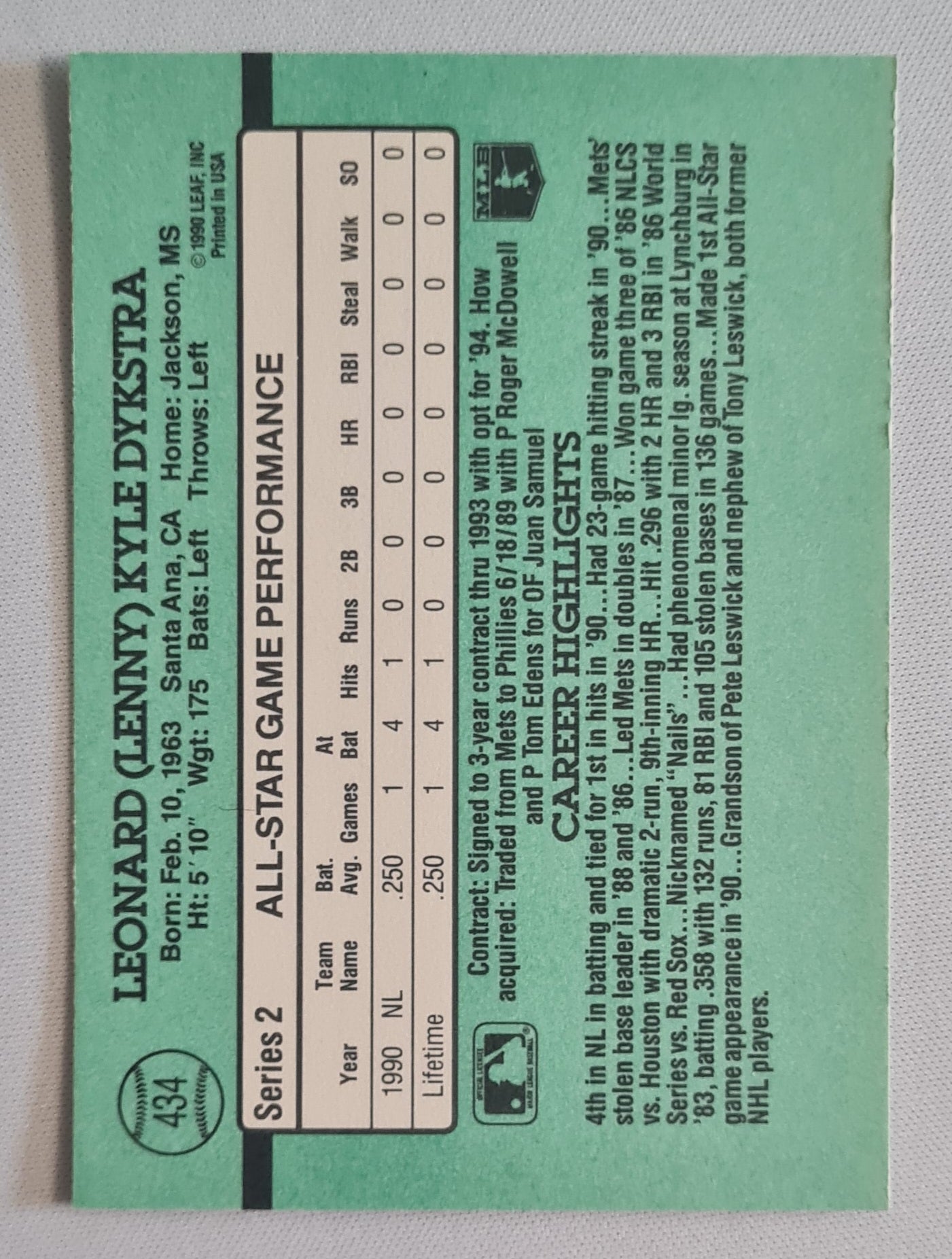 Len Dykstra - 1990 Donruss Leaf MLB Baseball Phillies #434