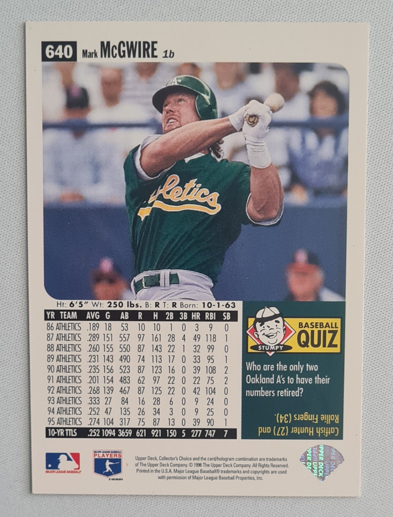 Mark McGwire - 1996 Upper Deck MLB Baseball Oakland Athletics #640