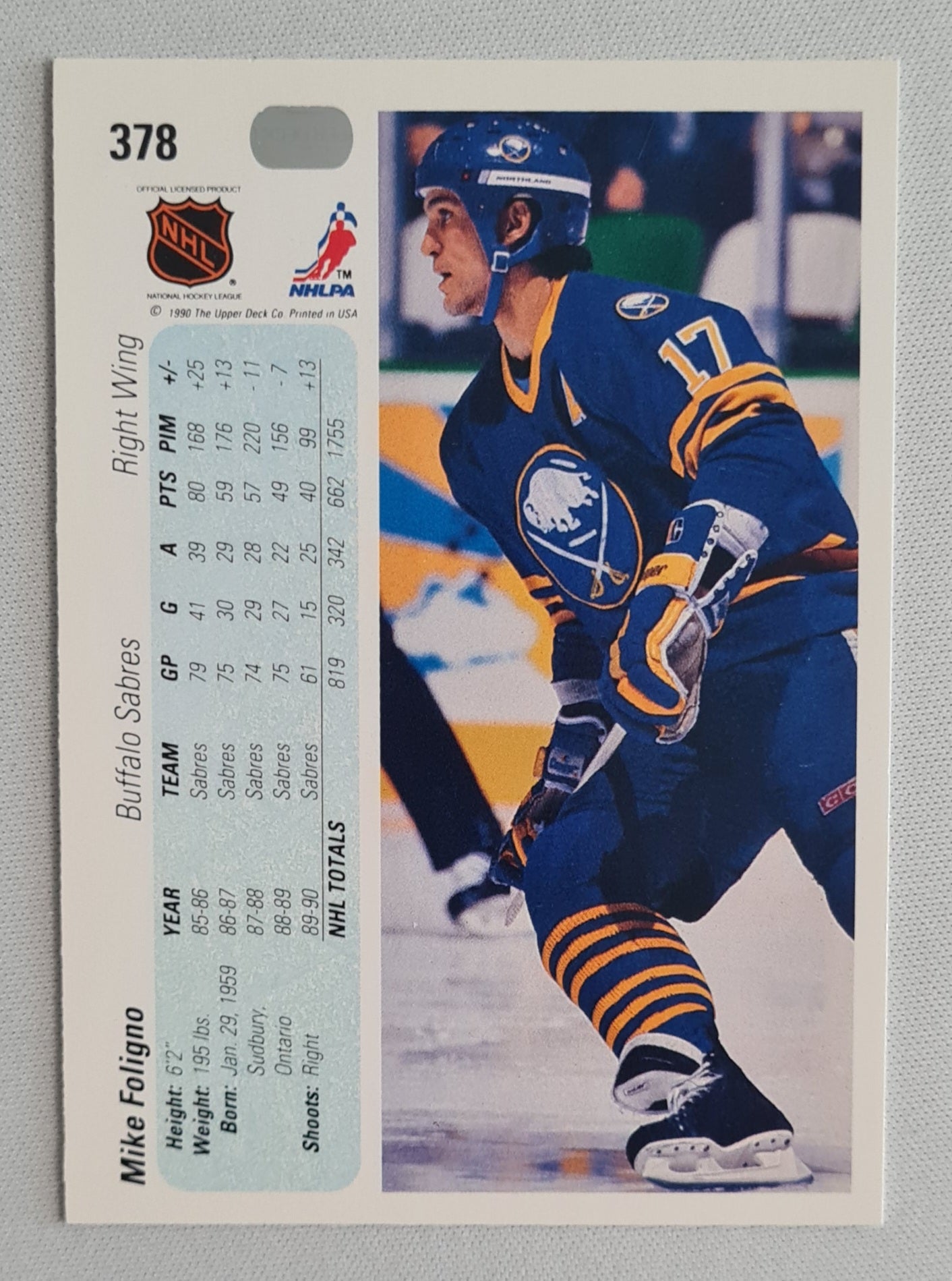 Mike Foligno - 1990 Upper Deck NHL Ice Hockey Buffalo Sabers #378