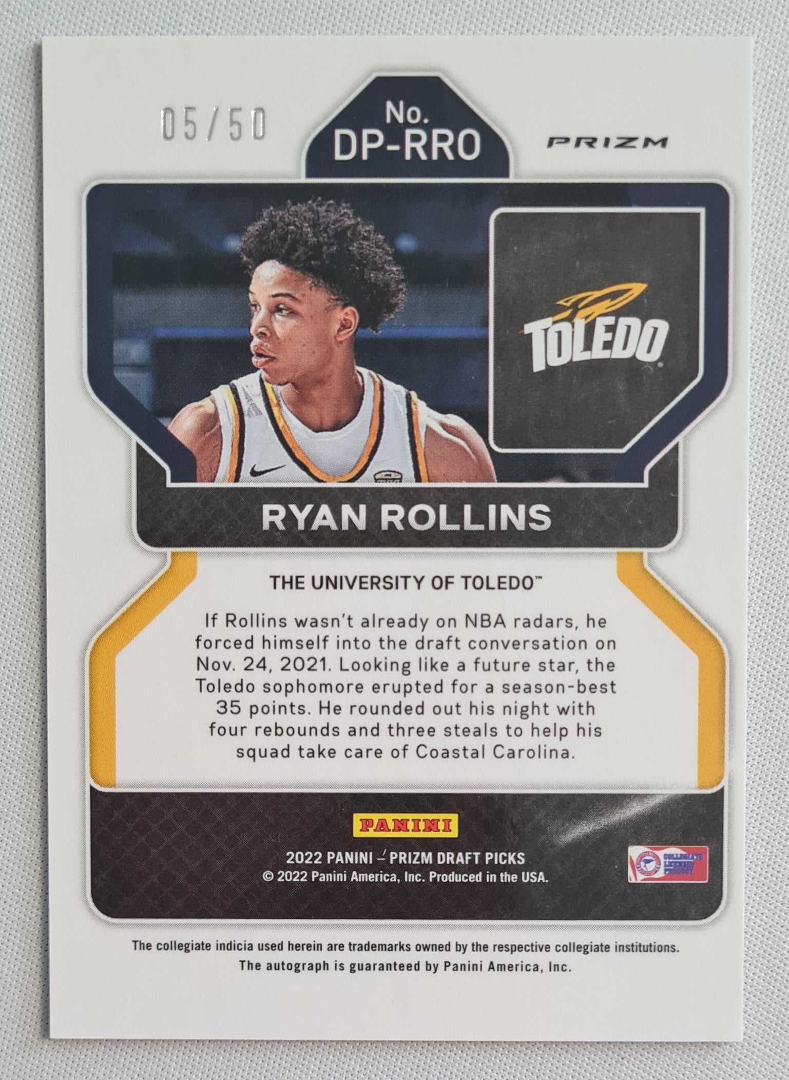 Ryan Rollins - 2022 Panini Prizm Draft Picks /Auto - Purple Disco /50