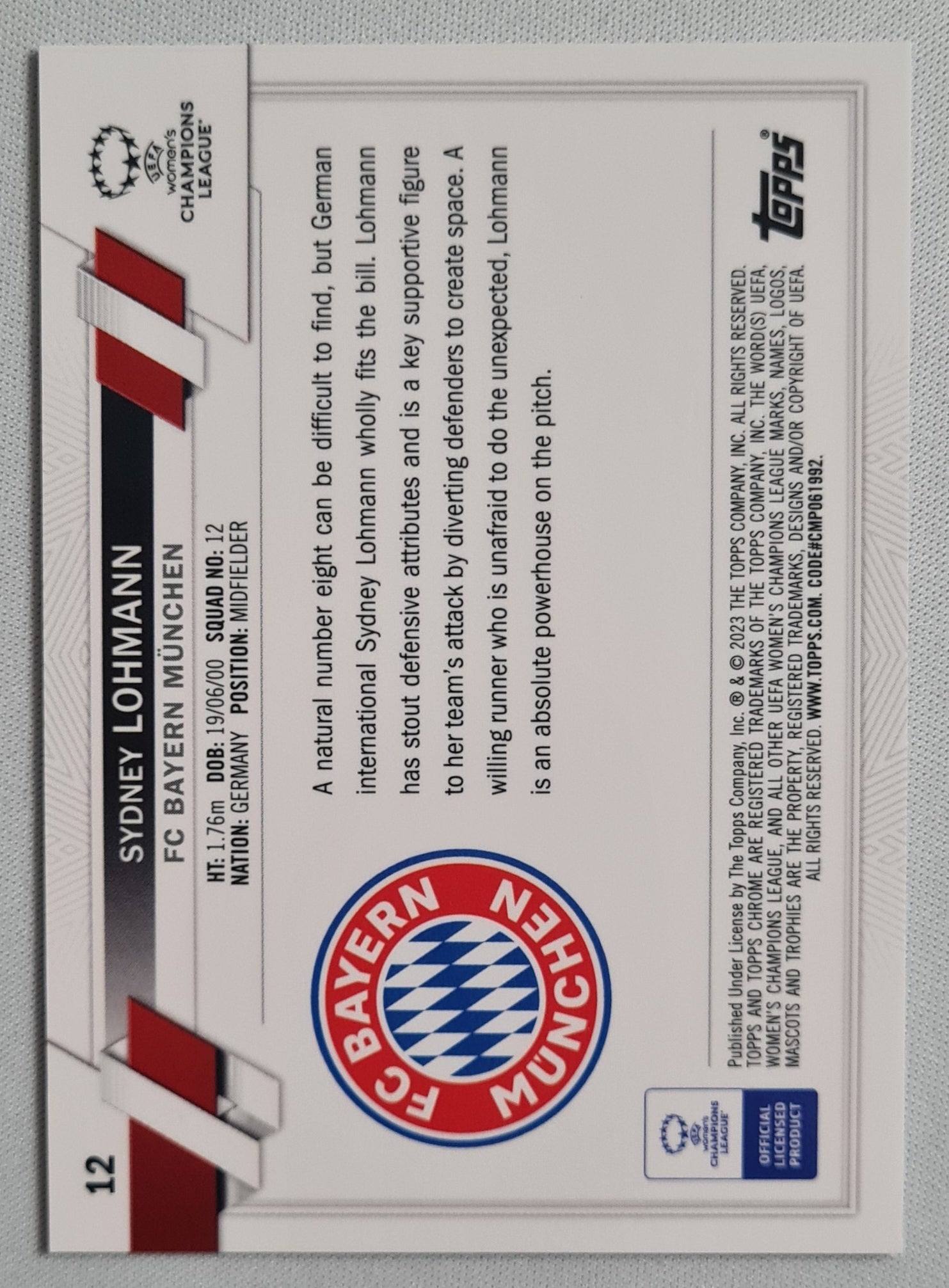 2023 Topps Chrome Women Football Blue (RC) - FC Bayern Munchen #12